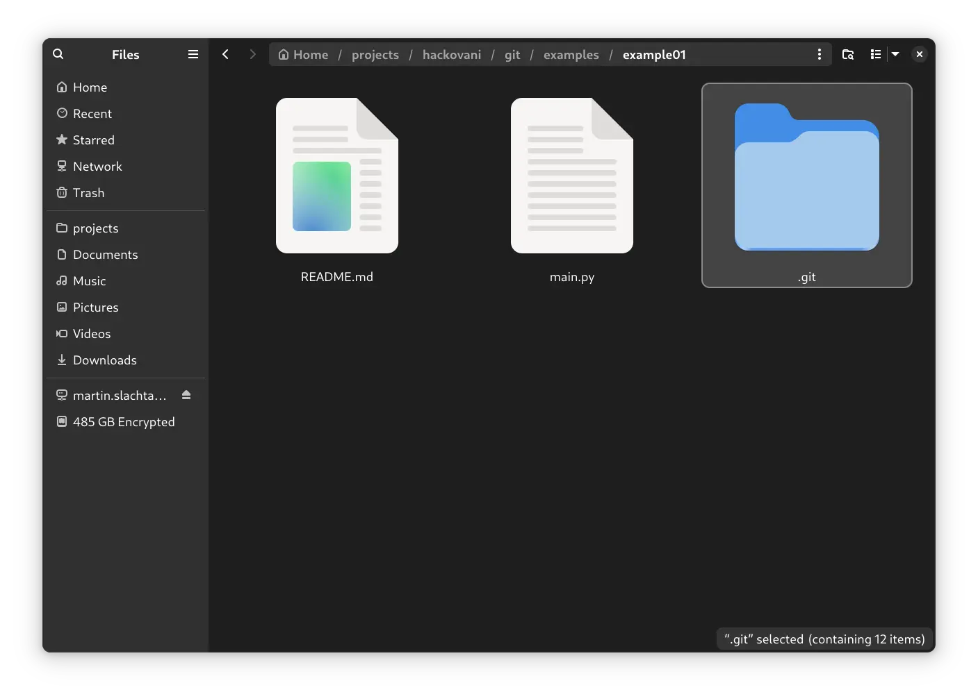 Když si necháme vypsat všechny prvky ve složce, uvidíme, že přibyla složka pro repozitář: .git: